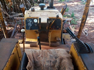 Contrapeso na traseira para melhor utilizar a potência do motor e melhorar a marcha ré em terrenos acidentados.