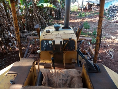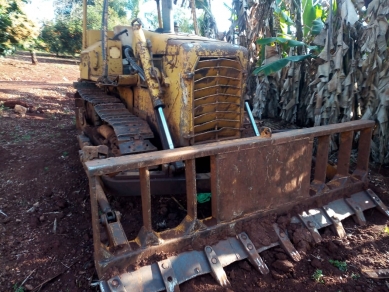Contrapeso na traseira para melhor utilizar a potência do motor e melhorar a marcha ré em terrenos acidentados.