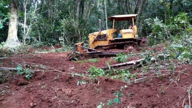 Lâmina e escarificador dianteiro com inclinação lateral hidráulica.